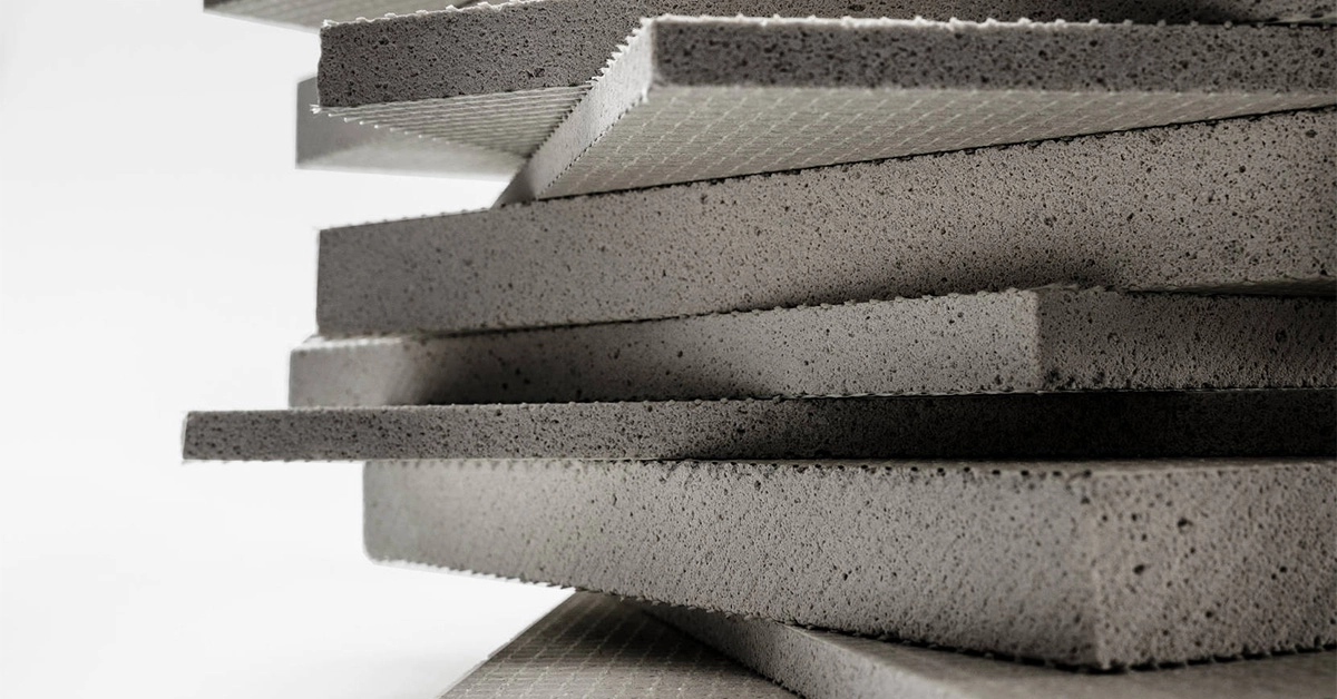 | Composición | Núcleo de granulado de vidrio reciclado expandido + aglutinantes a base de resinas reactivas u orgánicas + malla de fibra de vidrio en ambas caras. |