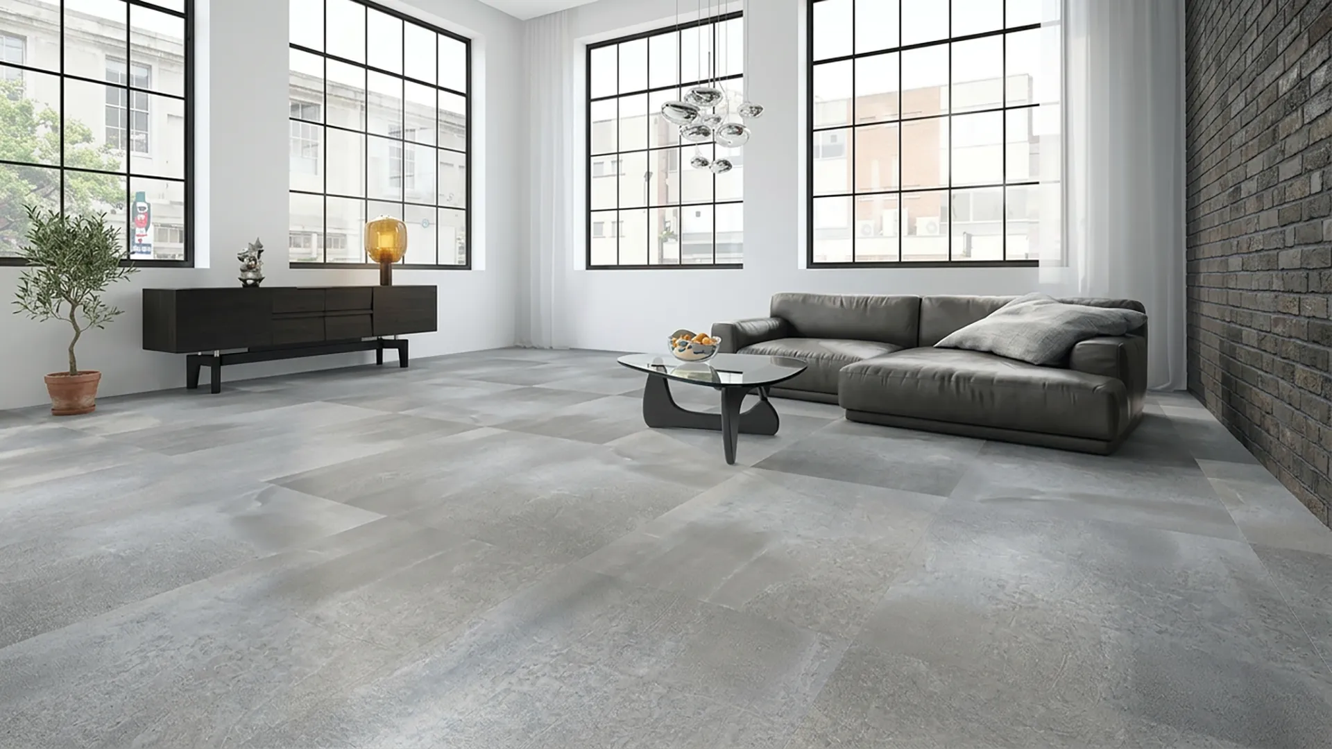 XSTONE Floor Ecuran Smooth Middle Grey is a bio-based smooth stone-effect floor panel engineered for spaces that value longevity over trend, presence over performance. The Smooth texture lays down a foundation of pure architectural calm: a uniform, velvety mineral grain with subtle natural variations that brings seamless visual continuity to any floor plan, wrapping the space in quiet, uninterrupted elegance.