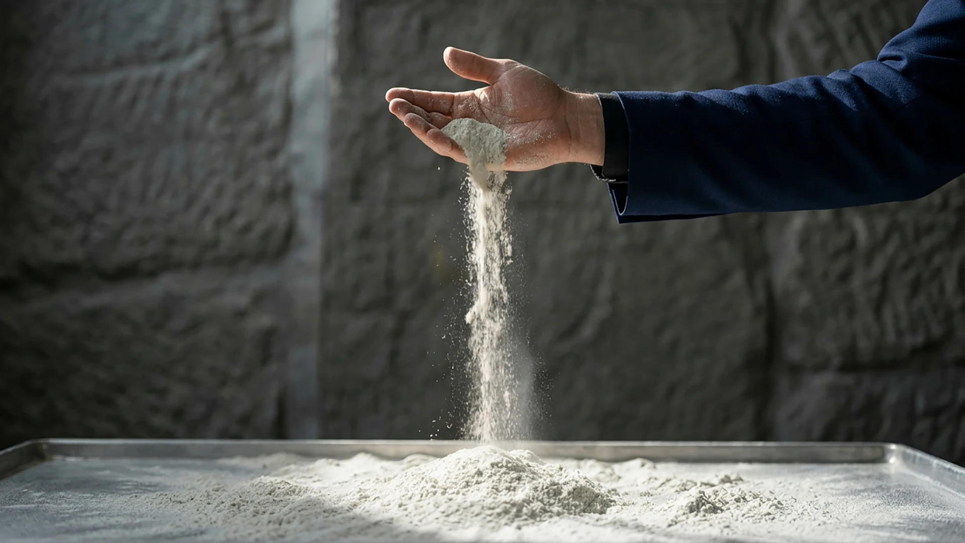 The mineral compound is then manually applied using a spatula onto flat production tables or silicone moulds. This handcrafted process allows for the creation of natural textures and subtle irregularities, giving each sheet a unique mineral expression while maintaining strict control over thickness and performance.