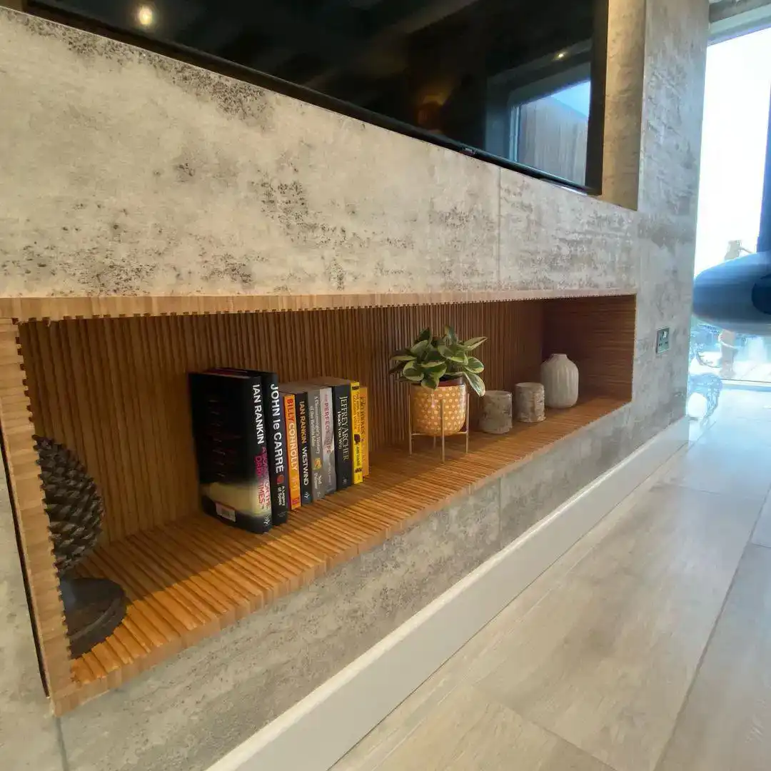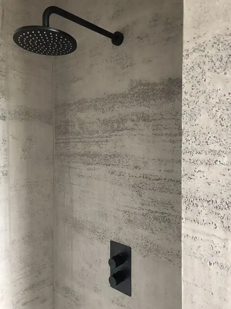 Where ancient stone meets modern engineering. This flexible mineral veneer combines the timeless depth of Travertine Classic with a refined Middle Pebble Grey tone. Mounted on a lightweight fibreglass roll backing. Its surface reveals a constellation of natural pores and micro-cavities. Each one a quiet testament to geological time, rendered in a balanced cool-grey palette that feels simultaneously grounded and luminous.